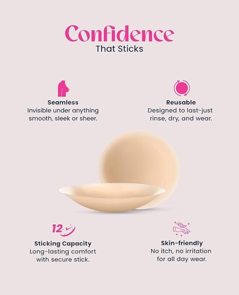 Our Nipple Cover is self-adhesive, guaranteeing a secure fit all-day long. They are reusable, with up to 20 uses, allowing you to wear them longer.