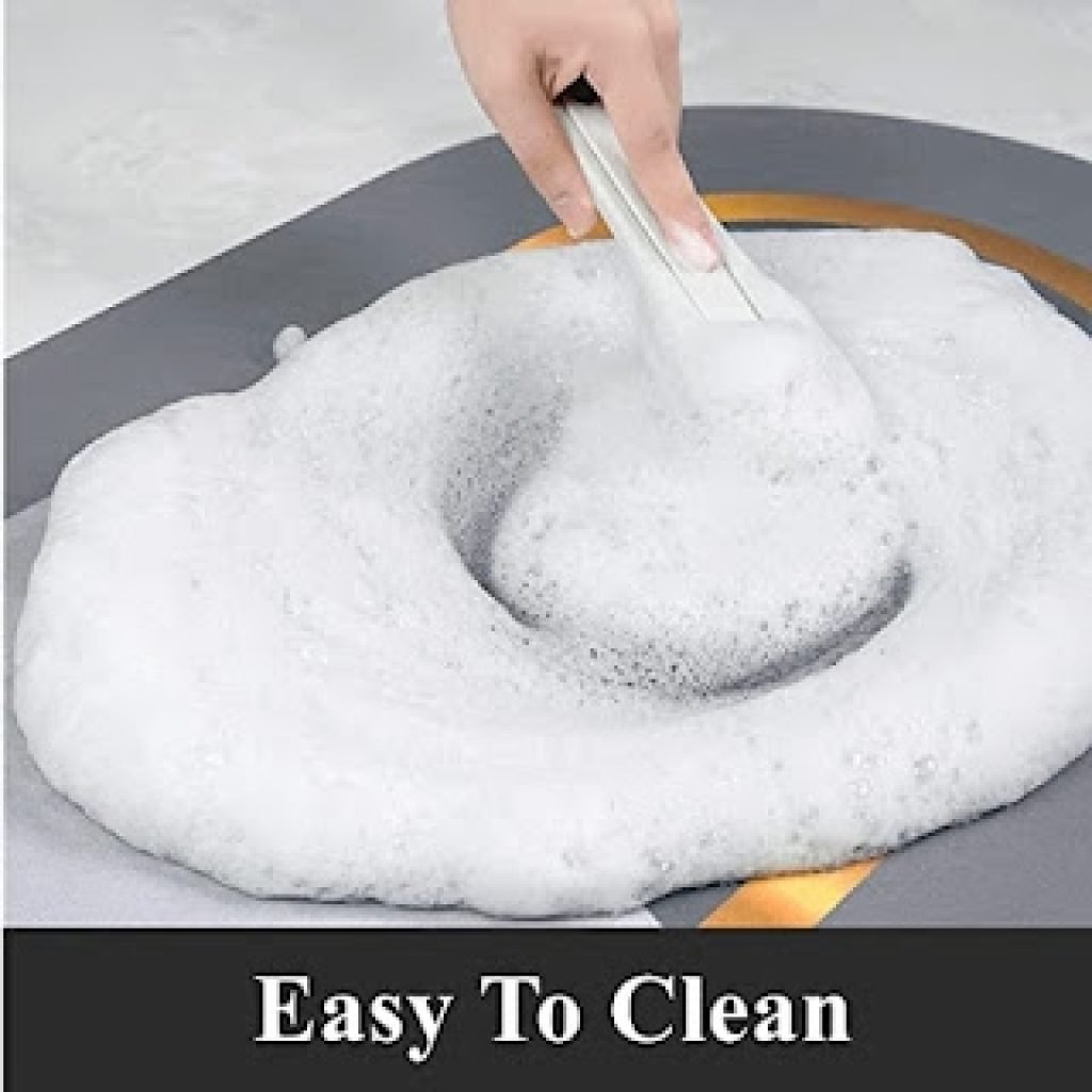 It's an ultra-absorbent bath mat that soaks up an impressive amount of excess water quickly and efficiently to keep floors clean and non-slip.The extremely rubberized backing of the bath mat, non-slip and water-absorbent, is designed for long-lasting use.