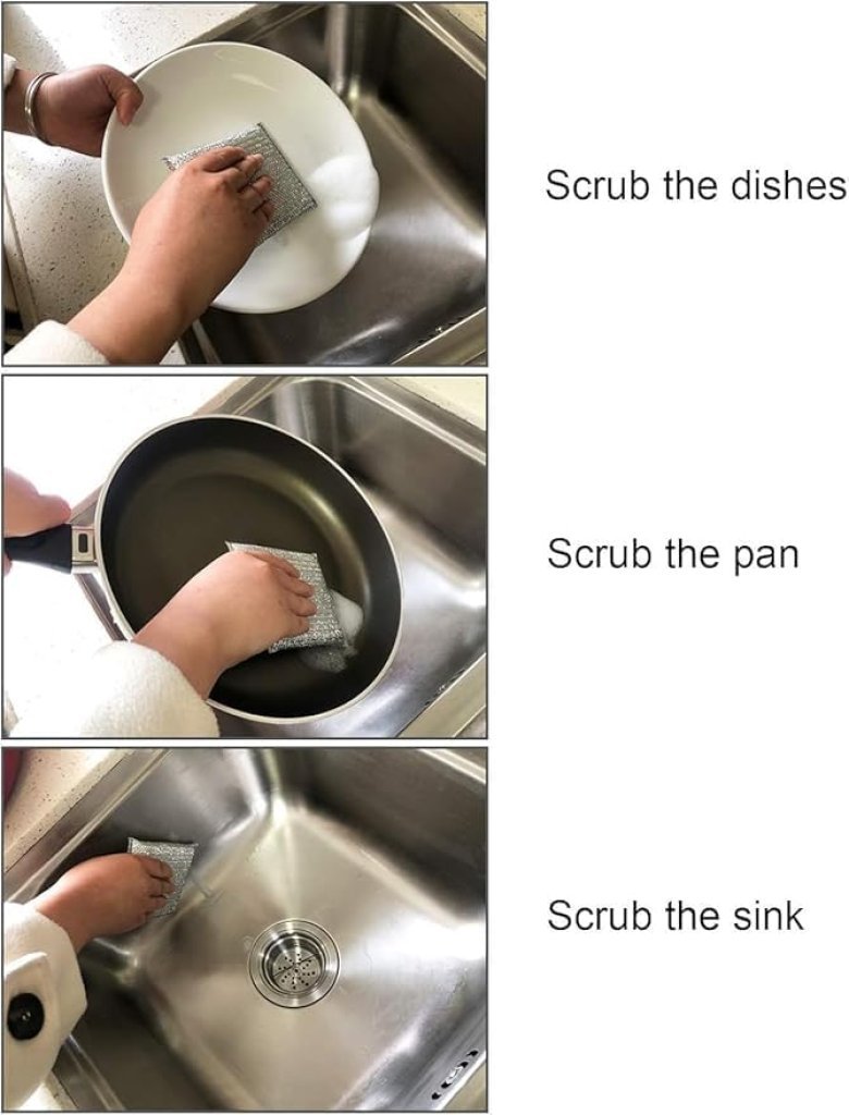 Title: Sponge Scrubber, Scrub Sponge for Utensil Cleaning, Scratch Proof Scrubber for Kitchen Utensils, Steel Wire Non-Scratch Reusable Dishwashing Sponge for Kitchen PACK OF 4
