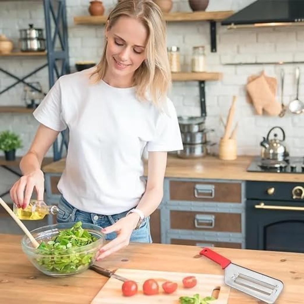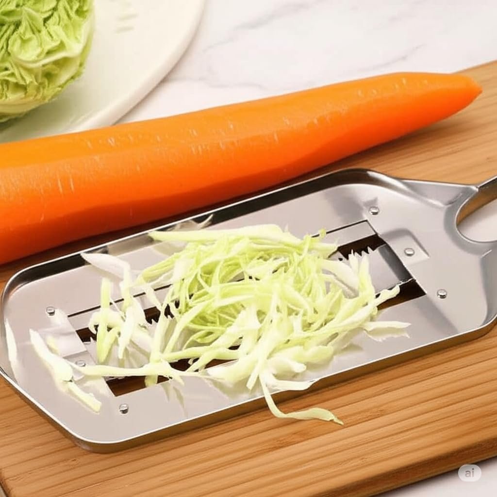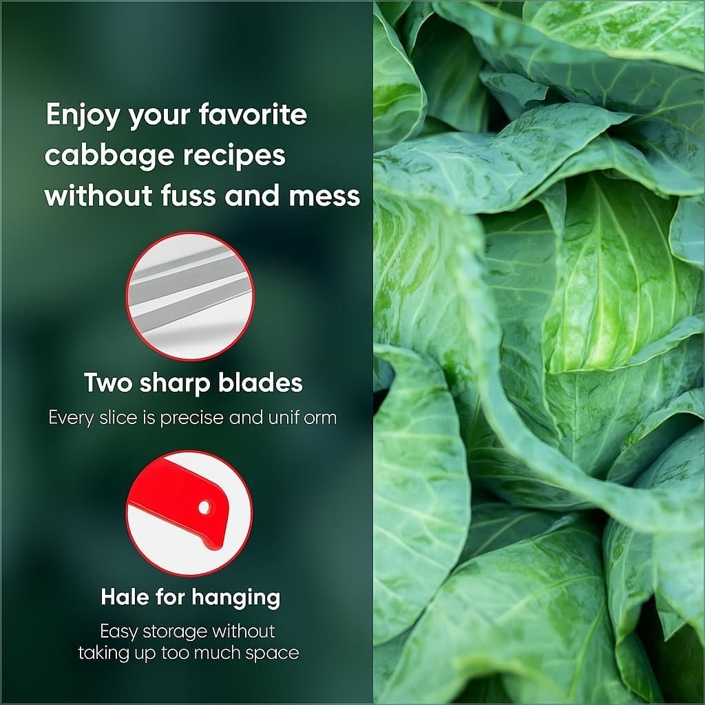 Key Features: Double Blade Design: Equipped with two sharp stainless steel blades for efficient slicing. Versatile Usage: Ideal for shredding cabbage, lettuce, peppers, cucumbers, and more.