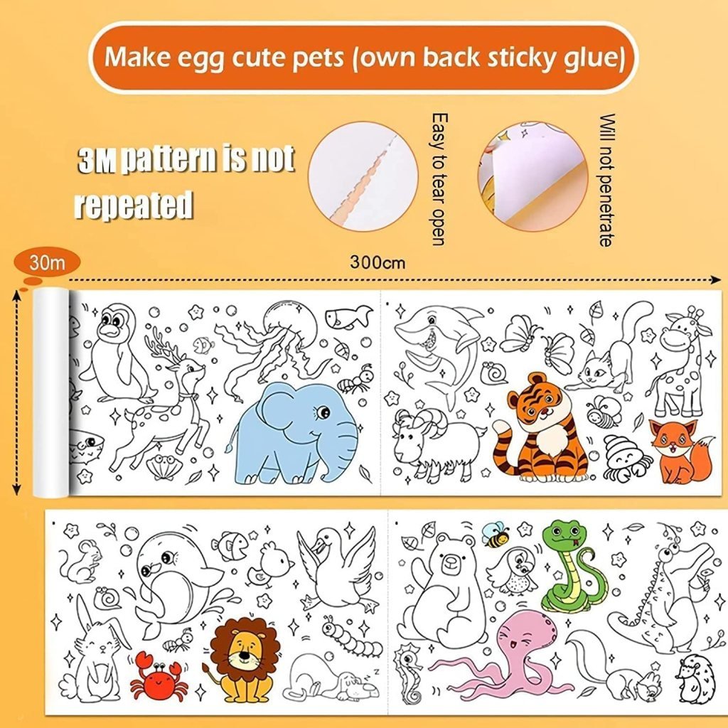 Children drawing roll is made from premium paper, non-toxic, non-smelling and safe for different ages kids. This 30x300cm coloring paper roll is suitable for almost all coloring art supplies, such as crayons, colored pencils, gel pens and markers. Kids can this drawing roll on walls, furniture, desks, floors or anywhere they want to create. And you can easily cut out the pattern on the scroll. Specially multi designed will not leave any marks on the floor and will not damage your wall.