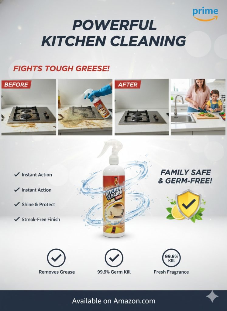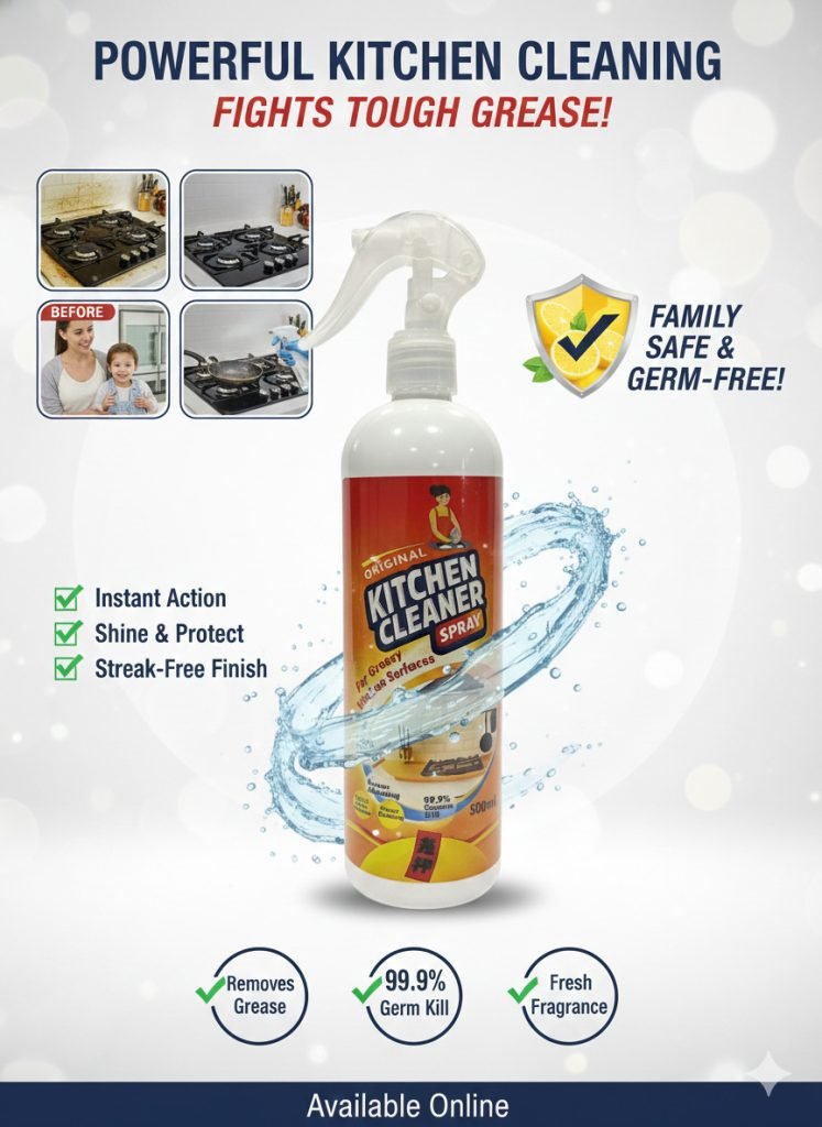 Title: Kitchen Cleaner Spray & Grease Stain Remover Stove & Chimney Cleaner Spray Non-Flammable Nontoxic Magic Degreaser Spray for Kitchen Gas Stove Cleaning (Kitchen Cleaner Spray 500 ml)