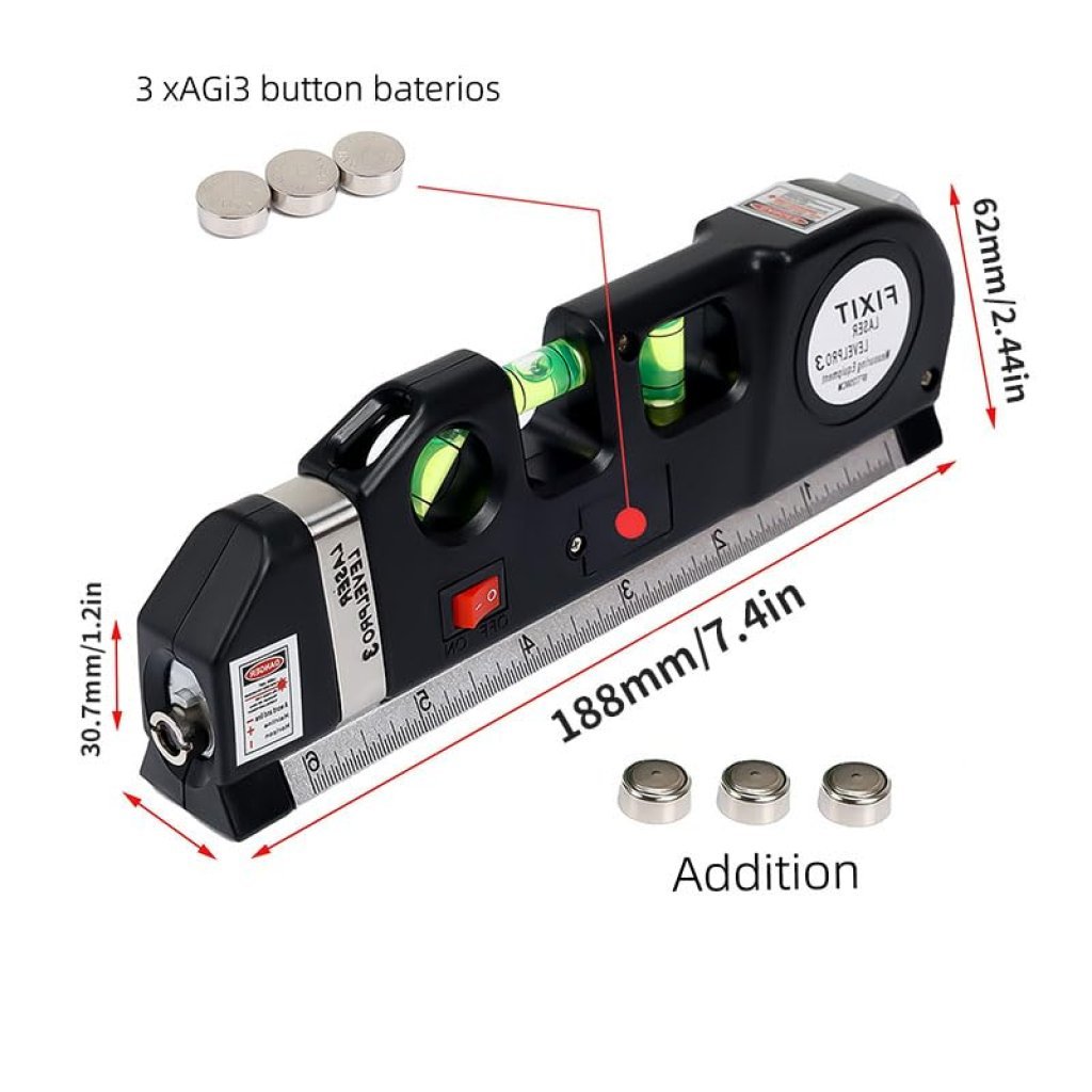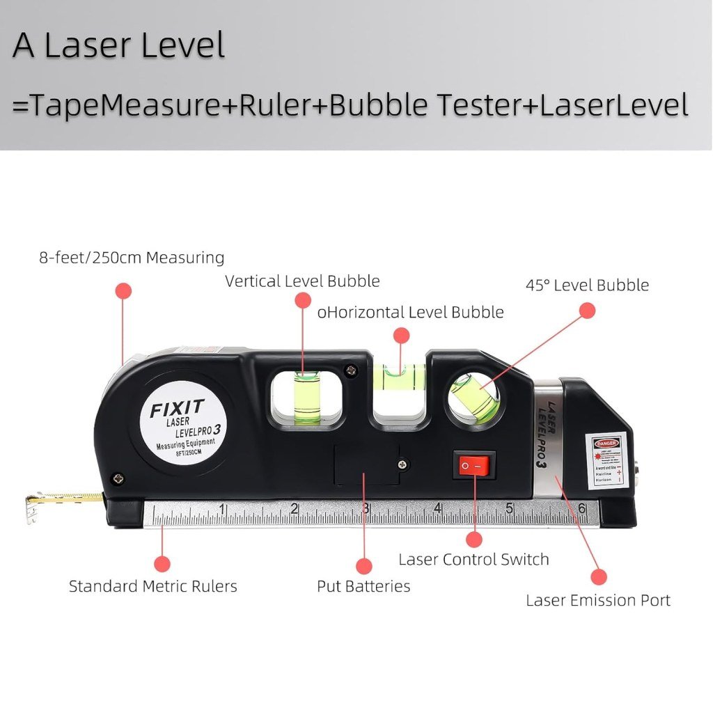Title:Laser Level Pro 3 with Measuring Tape 8FT (2.5m) | Multi-Function Laser Level Tool with Horizontal & Vertical Alignment, Built-in Ruler, Bubble Level (lesar leval patti)