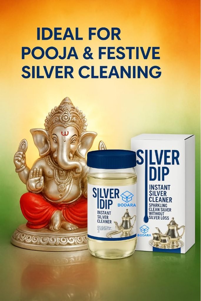 Bring back the original shine of your silver items with Silver Dip Instant Silver Cleaner. This powerful cleaning solution is specially formulated to instantly remove tarnish, oxidation, and dullness from silver jewelry, coins, utensils, and decorative items. With just a quick dip, your silver regains its sparkling brilliance without rubbing, scrubbing, or silver loss. Safe and effective, it restores a mirror-like finish to your valuables in seconds. Perfect for home use on bangles, chains, anklets, idols, and silverware.