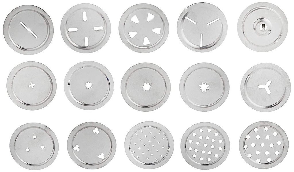 Comes with 15 interchangeable discs featuring different patterns and shapes to create various traditional Indian snacks and noodles with professional results