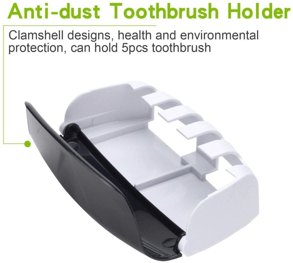 Title: Automatic Toothpaste Dispenser, Press to Paste Toothpaste Squeezer and 5 Toothbrush Holders Bathroom Organizer