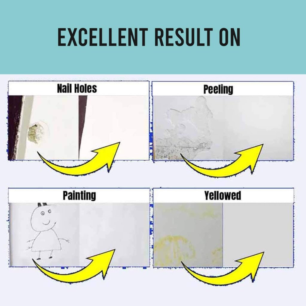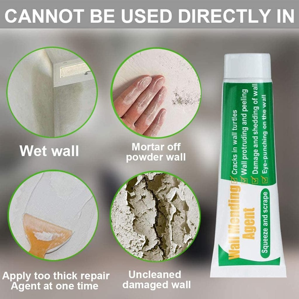 - Wall mending agent is perfect for repairing cracks, nail holes, holes, peeling walls, graffiti and stains on walls. Perfect for small repair projects. Wall hole filler cannot use for wet wall, mortar off powder wall, uncleaned damaged wall, etc.